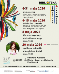 Serdecznie zapraszamy na kolejne spotkanie Dyskusyjnego Klubu Książki dla Dzieci, które odbędzie się 29 maja 2026 r.