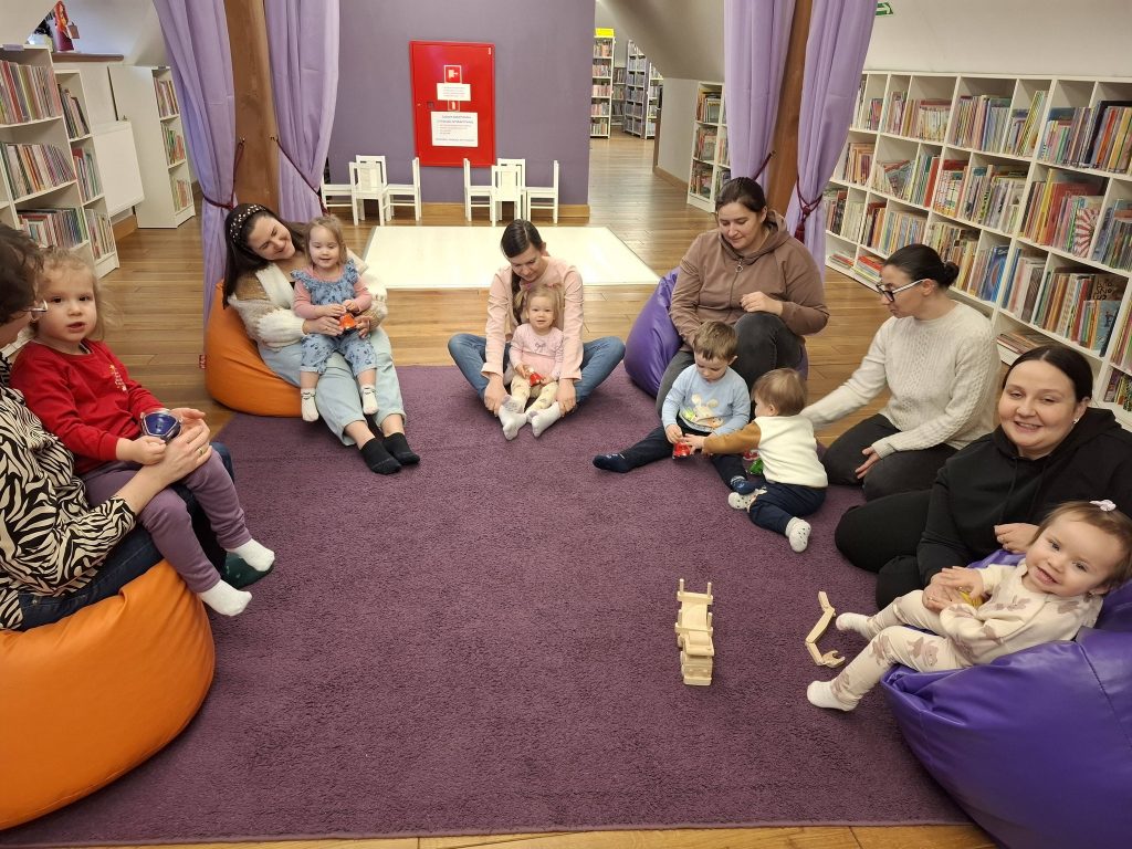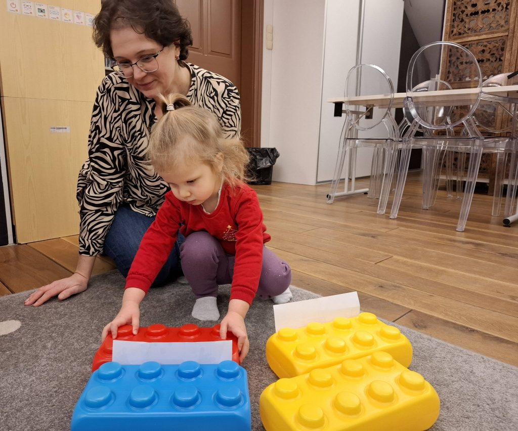 Maluchy rozpoczęły od samodzielnego konstruowania obrazków z dużych puzzli, rozwijając koordynację wzrokowo-ruchową oraz koncentrację. Przy stolikach czekała na nich zabawa sensoryczna – dzieci tworzyły zimowe krajobrazy, rozprowadzając farby i eksperymentując z fakturą. Wspólnie sięgnęliśmy też po książeczki pełne zimowych opowieści.