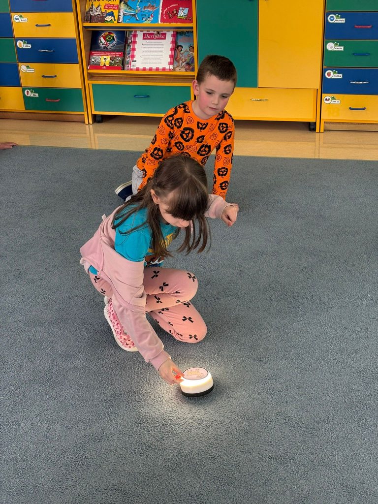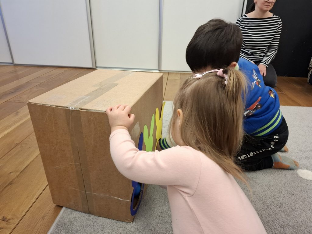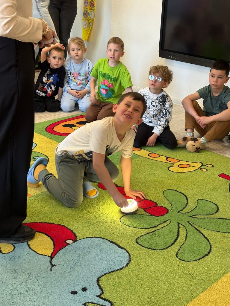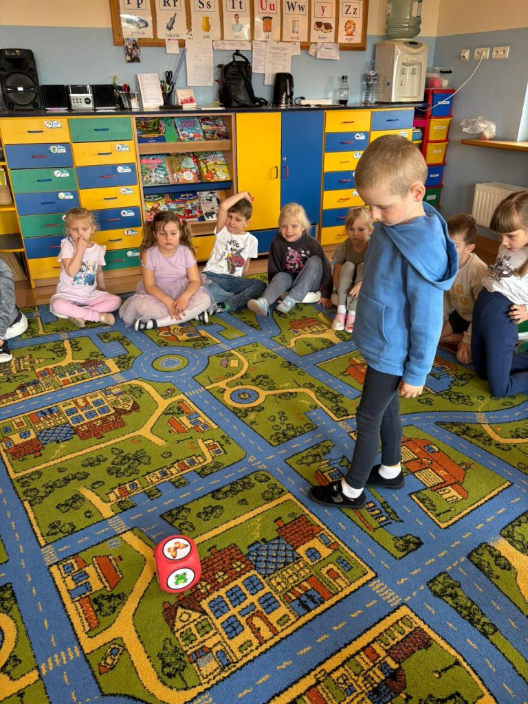 Nie zabrakło również wspólnej zabawy – przedszkolaki odkrywały bohaterów książki, a następnie, rzucając kostką, naśladowały ich zachowania, co dostarczyło wszystkim wiele radości i śmiechu.