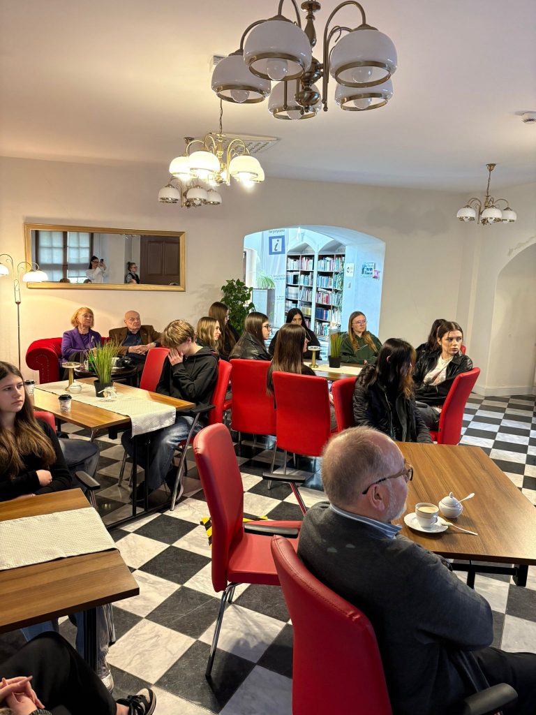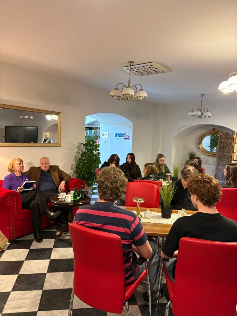 15 kwietnia 2026 roku naszą bibliotekę odwiedzili wyjątkowi goście – Małgorzata i Roland Hellmann. Para przeprowadziła swego rodzaju lekcję historii, w której uczestniczyli uczniowie I Liceum Ogólnokształcącego im. Tomasza Zana we Wschowie. Na początku małżeństwo Hellmann zaprezentowało kilka krótkich nagrań, ukazujących sedno omawianego problemu, czyli Stanu Wojennego w Polsce. Następnie opowiedzieli o pomocy humanitarnej dla mieszkańców naszego kraju, którą wówczas organizowali, realizując transporty pomocowe z Niemiec. Na końcu każdy młody uczestnik miał okazję zadać pytania nasuwające się w trakcie spotkania oraz zakupić książkę spod pióra pani Małgorzaty Hellmann pt. „Droga z przeznaczenia”. Było to ogromnie inspirujące i pouczające przedpołudnie dla wschowskiej młodzieży, bowiem poznali tego dnia fragment bardzo ważnej historii Polski od osób, które doświadczyły jej na własnej skórze.