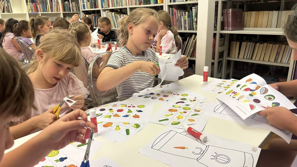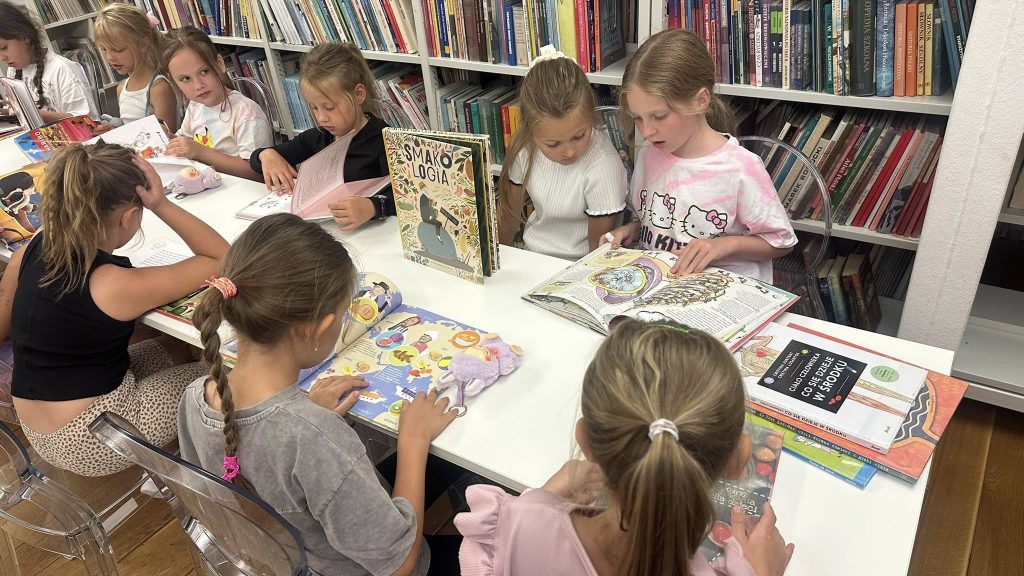 Po aktywności fizycznej przenieśliśmy się do czytelni, gdzie mali odkrywcy poszukiwali ważnych informacji o zdrowiu w książkach. Później z entuzjazmem przeszliśmy do rozwiązywania zagadek i quizów multimedialnych – to była doskonała okazja do połączenia zabawy z nauką.