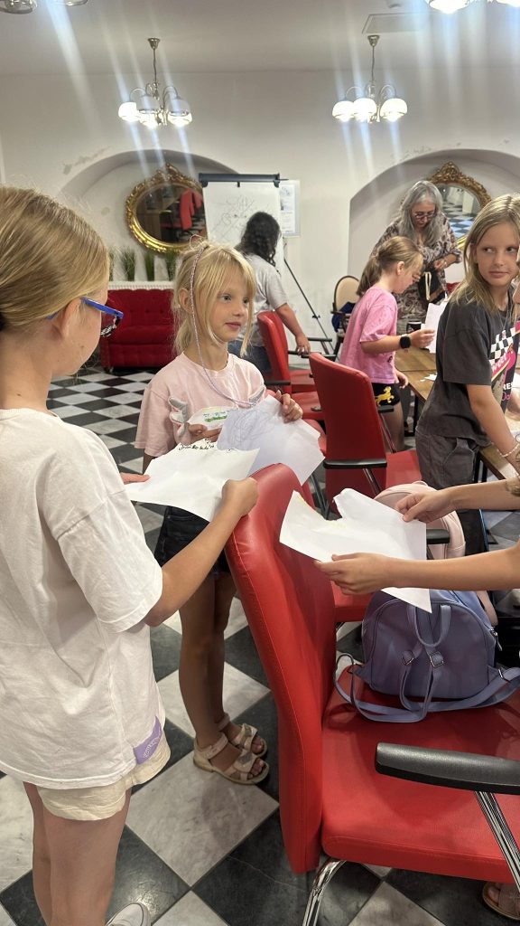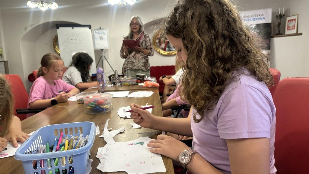 Integralną częścią spotkania były warsztaty twórcze. Uczestnicy zachęceni przez autorkę uczyli się mówić o sobie dobrze i z życzliwością. Dzielili się pozytywnymi słowami, które wzmacniały ich poczucie wartości oraz sprzyjały budowaniu pozytywnych relacji w grupie. Zwieńczeniem działań było wykonanie przez dzieci indywidualnych kolaży – autoportretów, które przedstawiały ich w sposób symboliczny i metaforyczny.