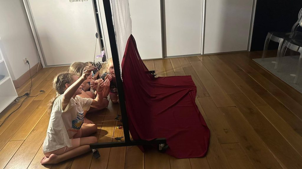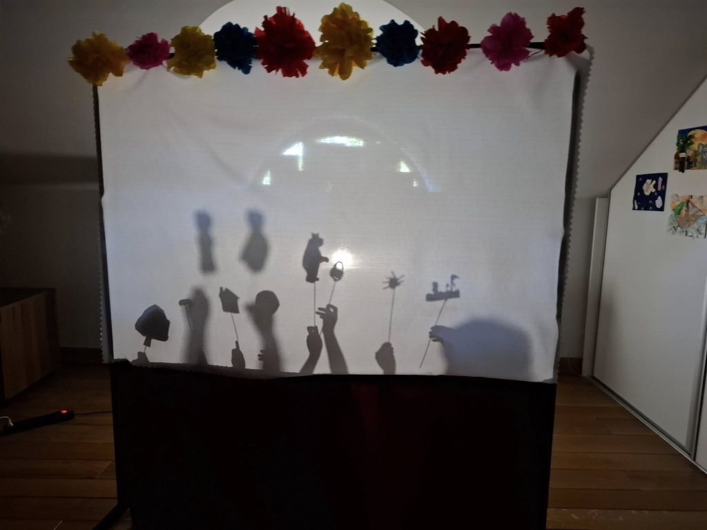 Zwieńczeniem zajęć było przygotowanie autorskiego teatrzyku cieni z udziałem baśniowych bohaterów, który uczestnicy zrealizowali samodzielnie, wykazując się kreatywnością i zaangażowaniem. Całość była doskonałą okazją do twórczej zabawy, rozwijania wyobraźni i odkrywania nowych form artystycznego wyrazu.