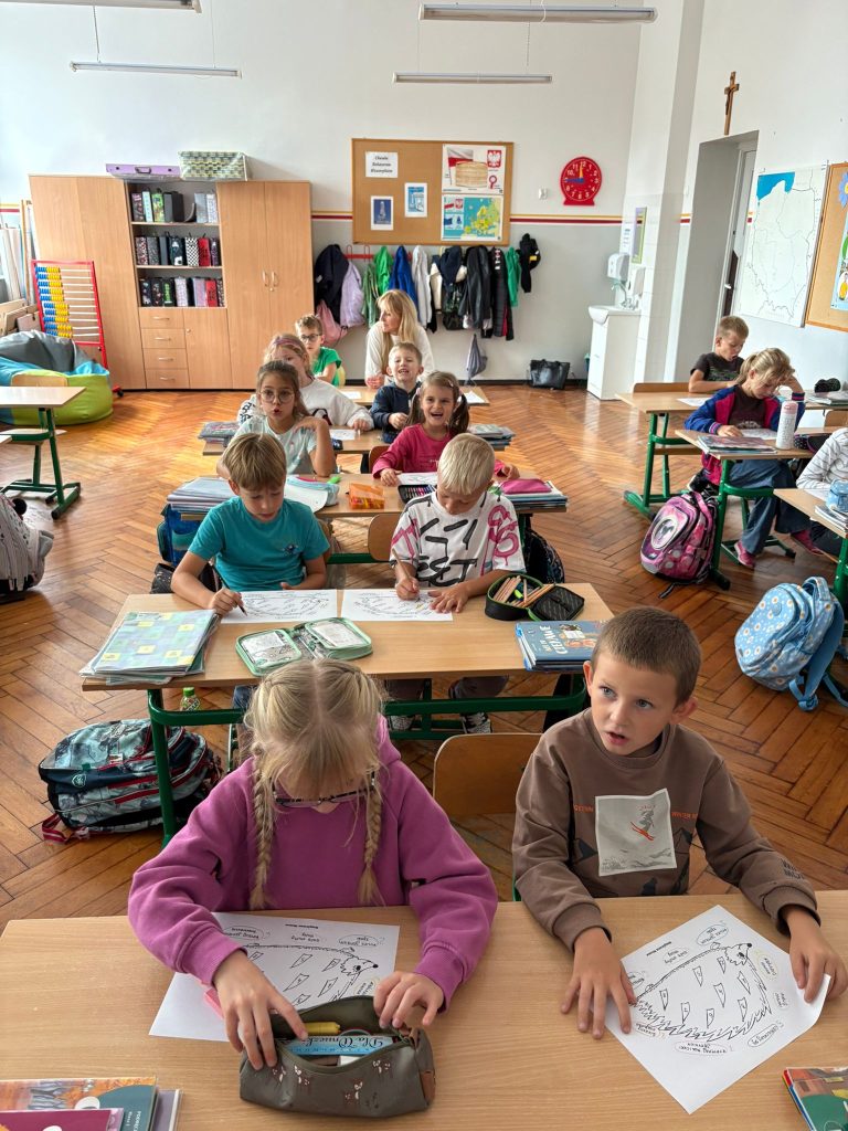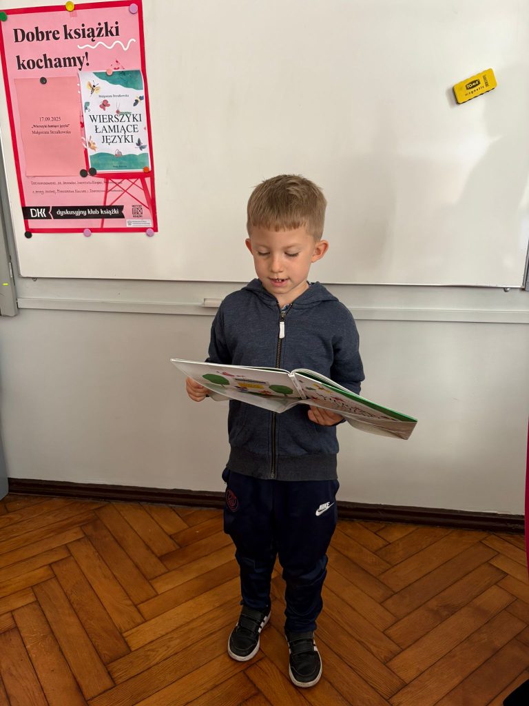 Po wakacyjnej przerwie, 17 września, odbyło się kolejne spotkanie Dyskusyjnego Klubu Książki dla Dzieci z udziałem uczniów klasy 2 Szkoły Podstawowej nr 2 im. Bohaterów Westerplatte we Wschowie. Tym razem uczestnicy poznali zabawne, językowo wymagające utwory autorstwa M. Strzałkowskiej z książki „Wierszyki łamiące języki”. Lektura stała się punktem wyjścia do rozmowy o rymach oraz o roli wyraźnej wymowy i poprawnego artykułowania słów, szczególnie podczas głośnego czytania tekstów zawierających trudne zwroty. W dalszej części spotkania dzieci wykonywały ćwiczenia usprawniające pracę aparatu mowy. Każde dobrze wykonane zadanie oznaczały, kolorując kolec na rysunku jeża – co sprawiło im wiele radości i zmotywowało do aktywności. Młodzi czytelnicy mieli również okazję samodzielnie zaprezentować wybrane wierszyki, doskonaląc technikę czytania. Na zakończenie wszyscy pracowali w parach, układając rymujące się wyrazy na podstawie otrzymanych ilustracji.