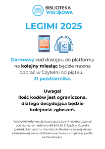 Legimi – listopad 2025 Published 22 października 2025 | By Czytelnia Darmowe kody dostępu do platformy Legimi na listopad dostępne od 31 października w czytelni!