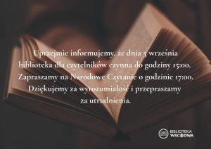 📚Już w ten piątek, 5 września, o godzinie 17:00 w naszej bibliotece odbędzie się wyjątkowe wydarzenie – Narodowe Czytanie!🤍❤️